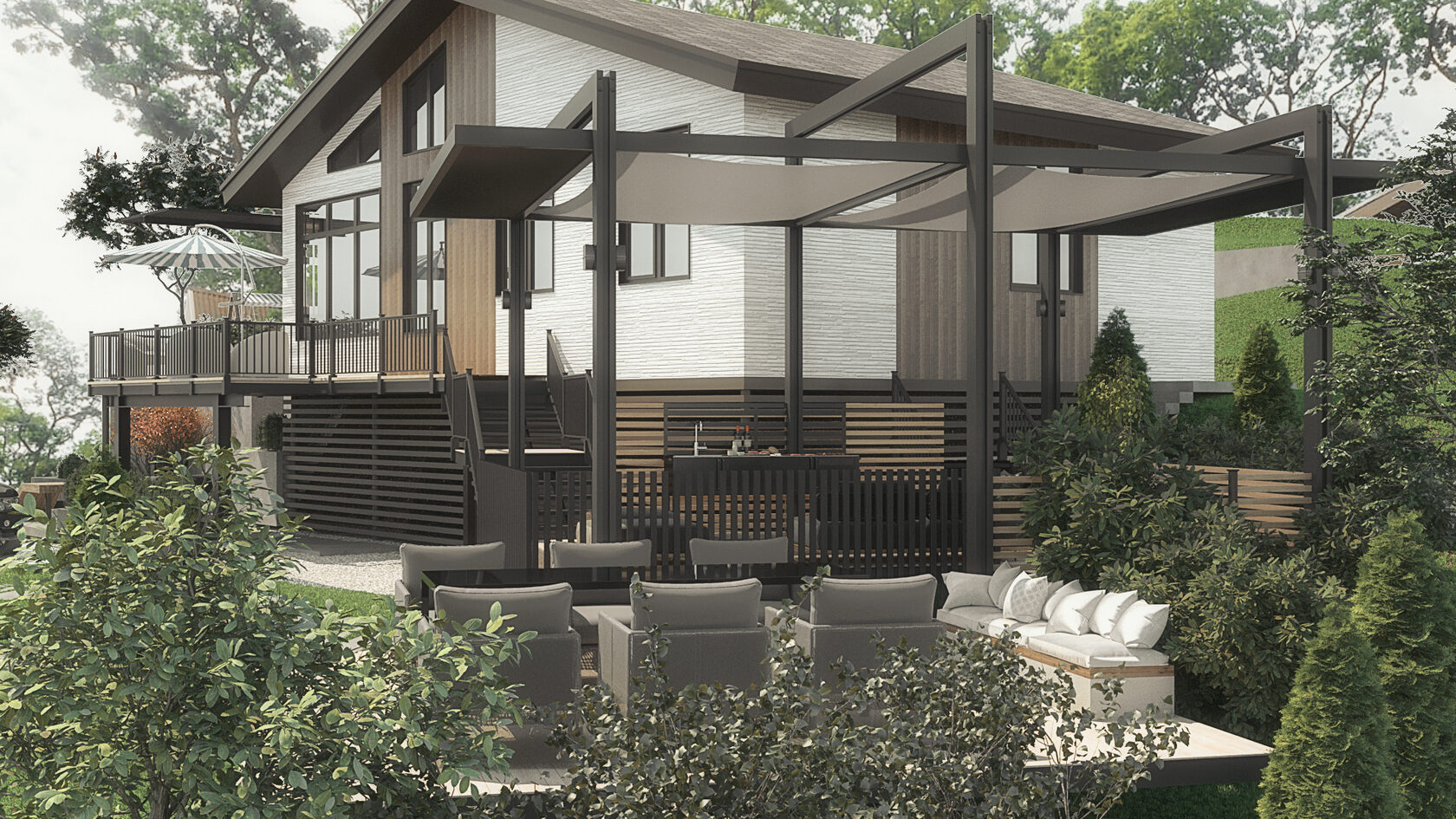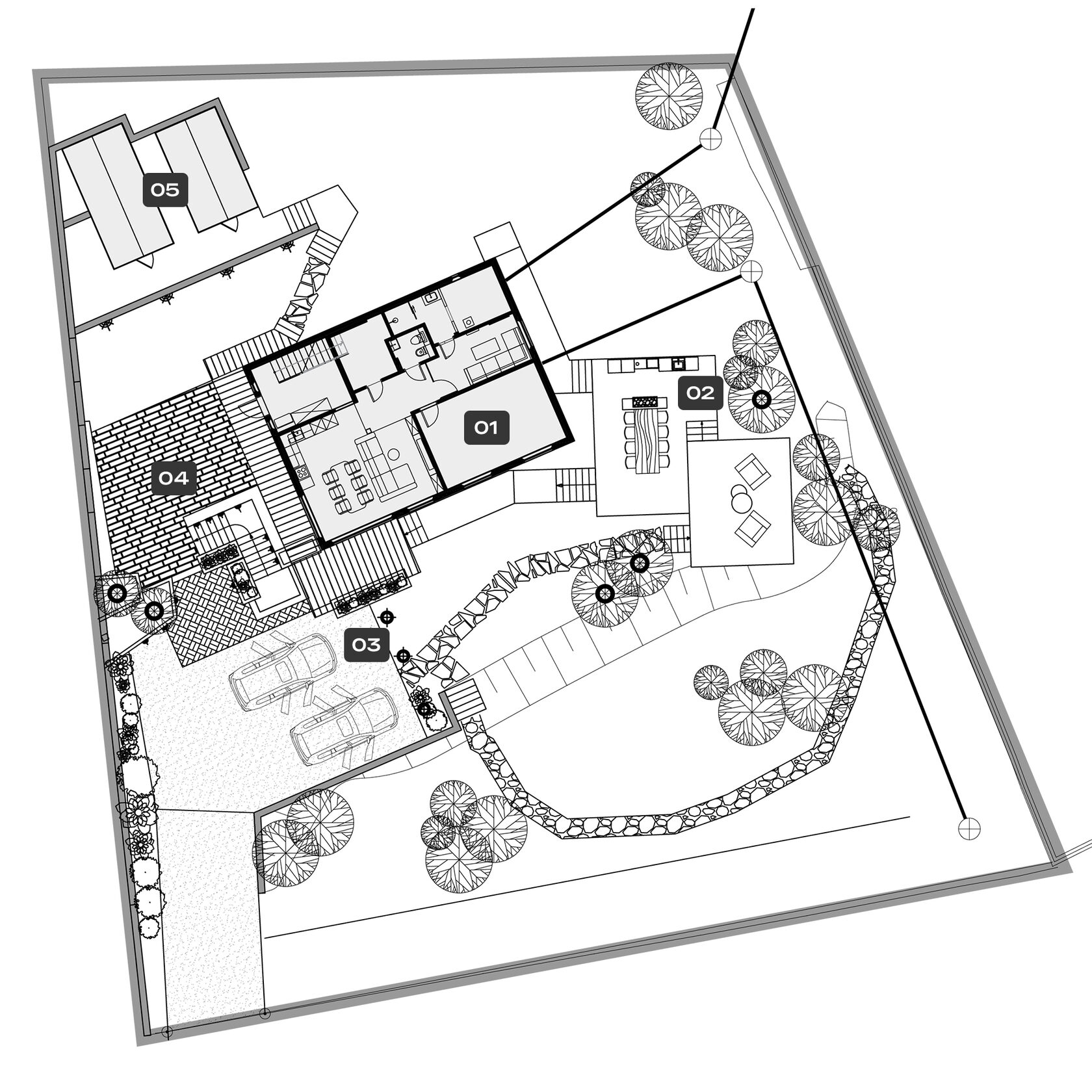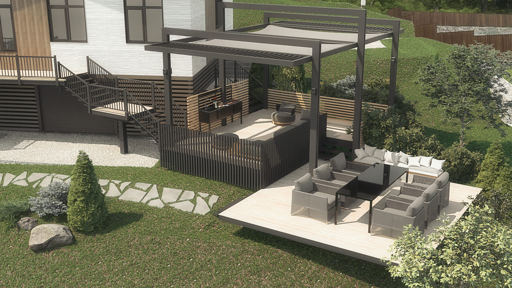 К нам обратились владельцы каркасного дома на сваях, который стоял на участке со сложным рельефом. Нашей задачей было превратить этот склон в функциональное и удобное пространство. Мы обыграли перепад высот, создав многоуровневое благоустройство.