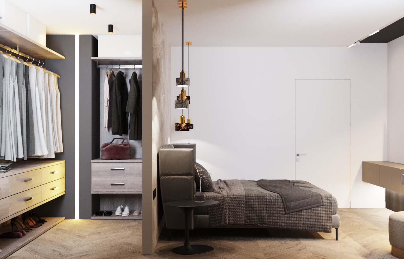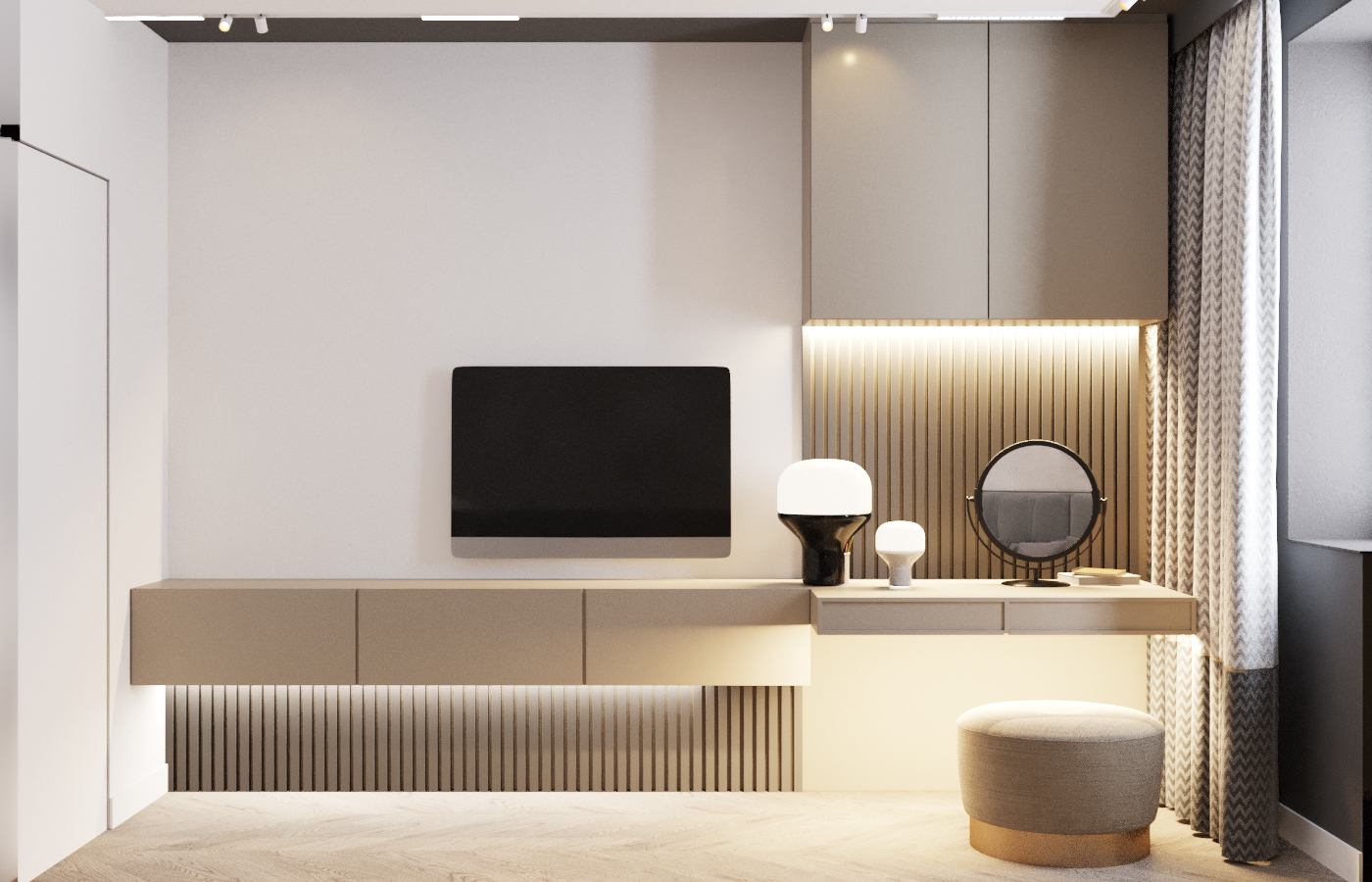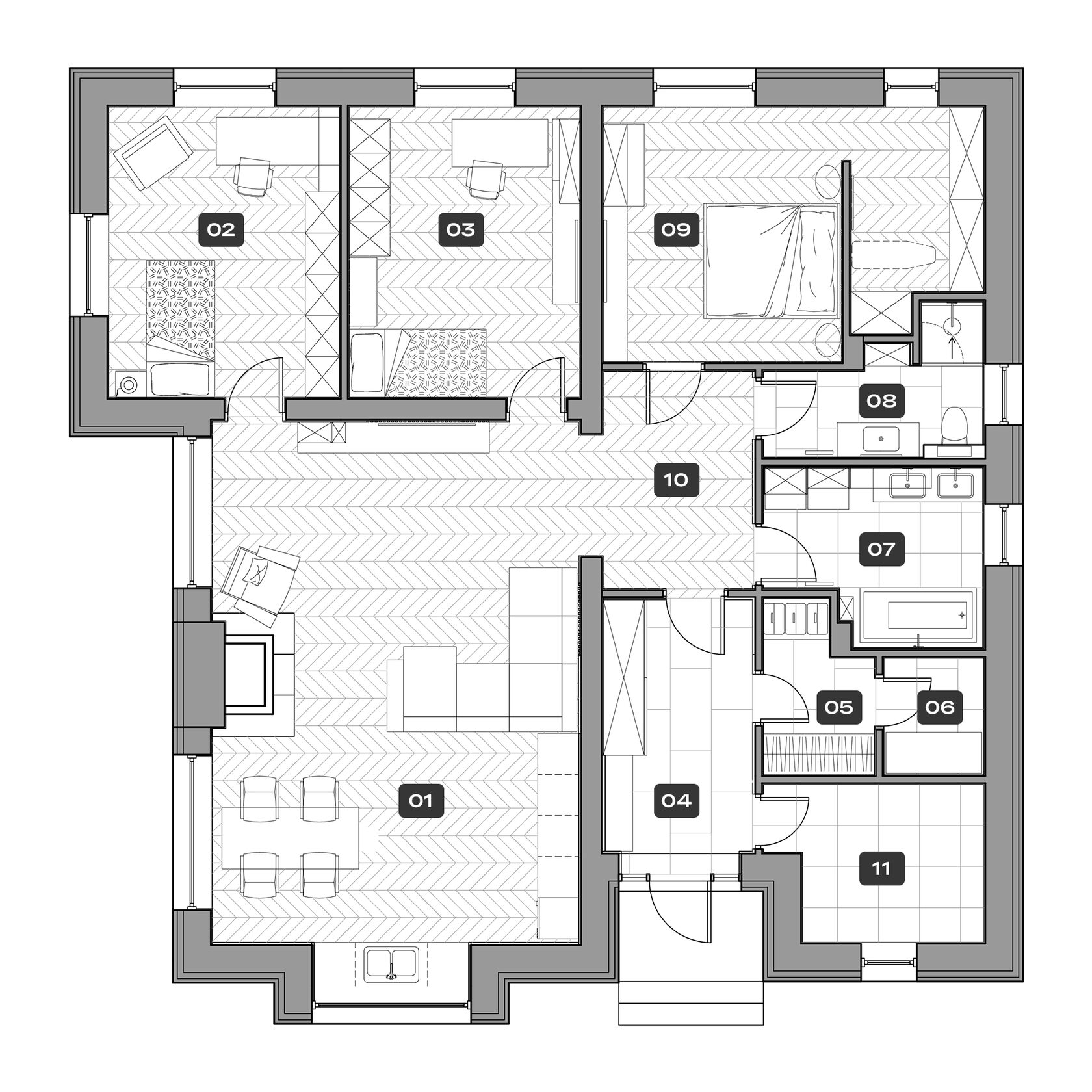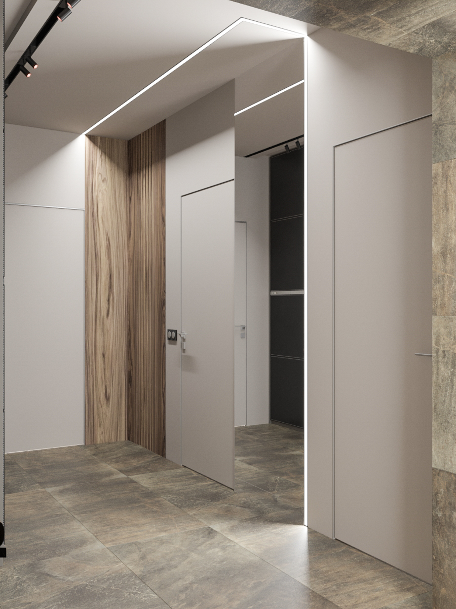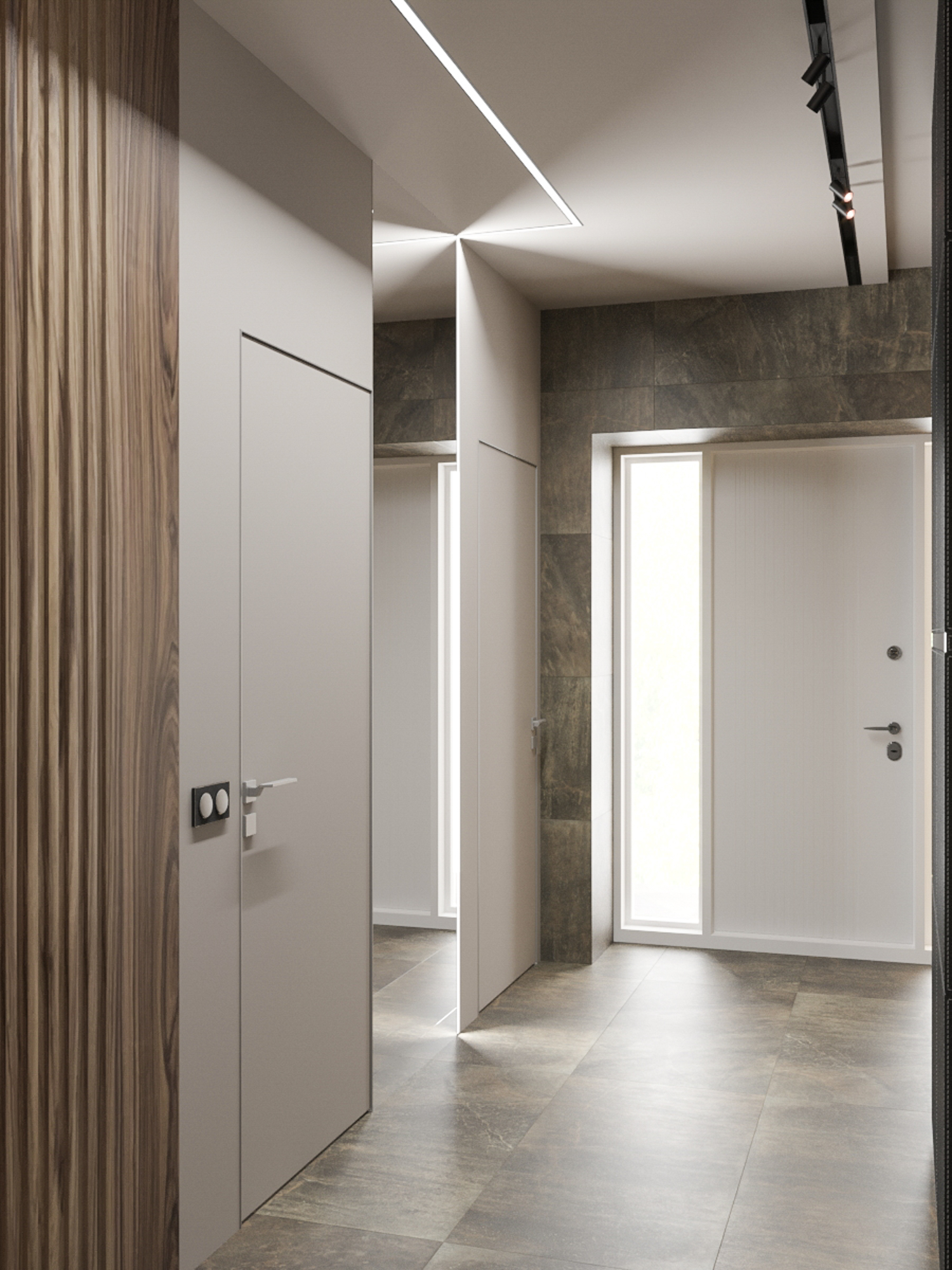 Мы разработали интерьер одноэтажного загородного дома для семьи, которая приезжает сюда на выходные и летом. Ключевой задачей было создать ощущение единения с природой, используя спокойную палитру и натуральные материалы — дерево и камень.