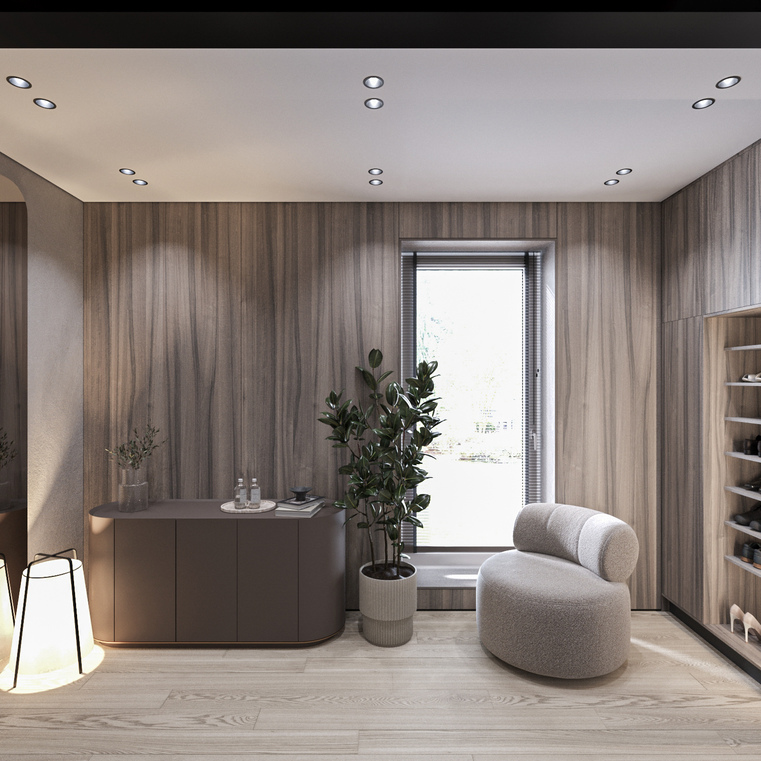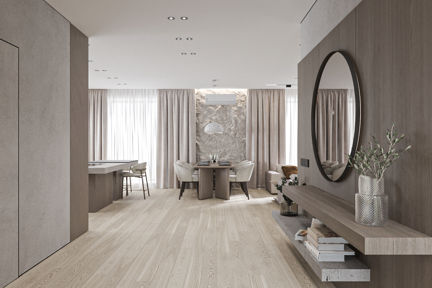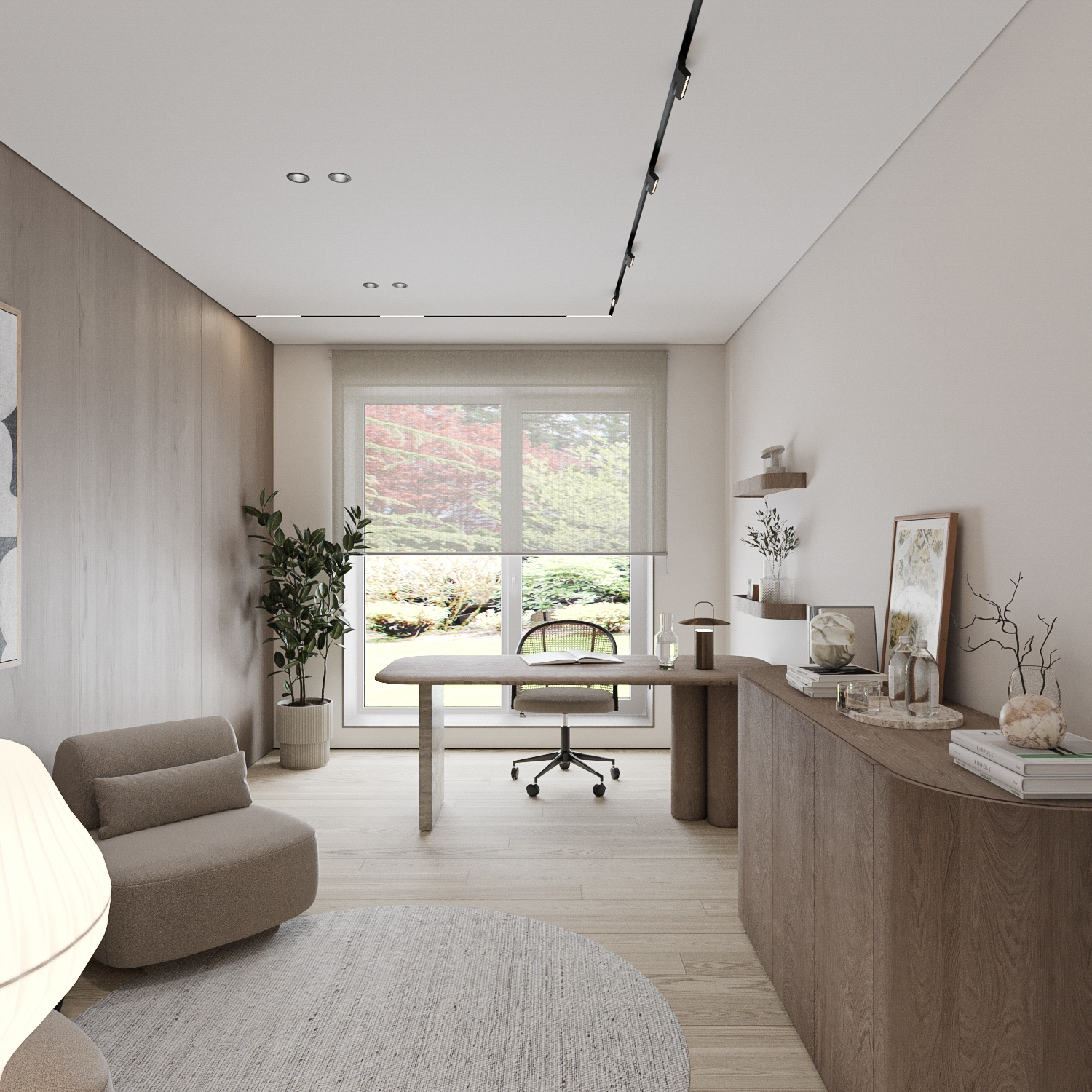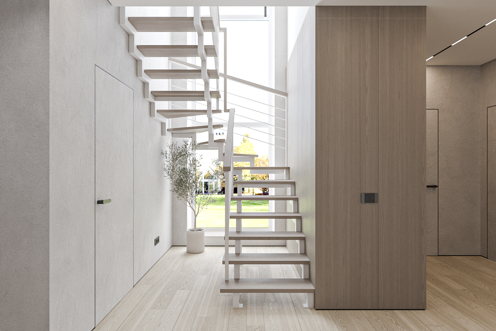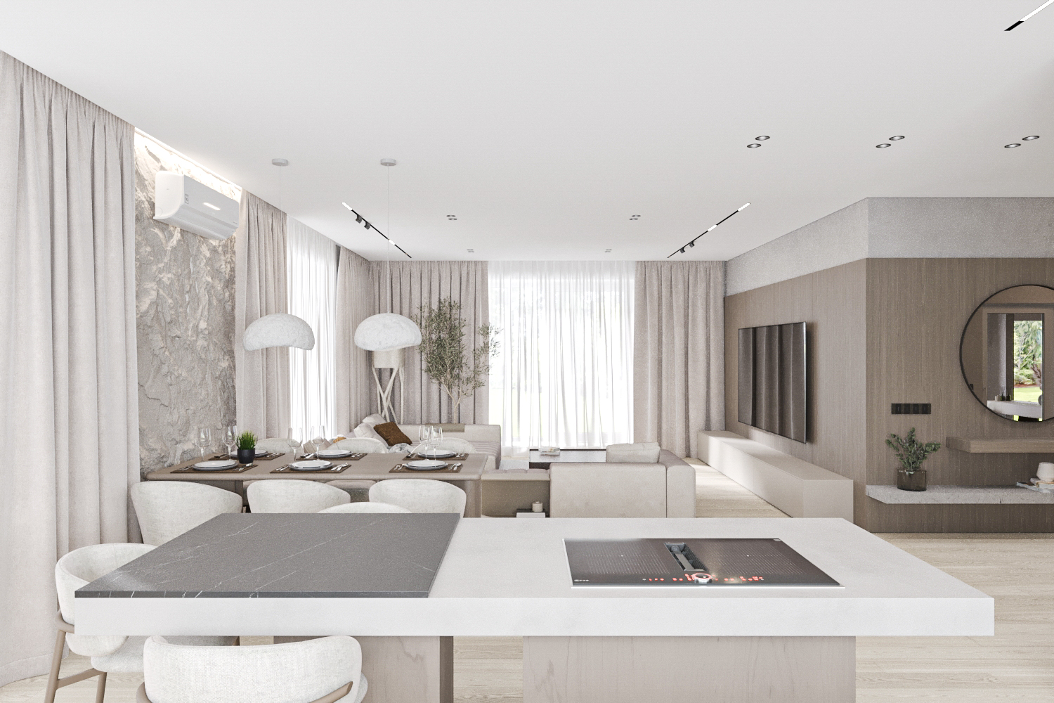 Мы разработали интерьер для двухэтажного дома площадью 255 м² в стиле джапанди. Задача состояла в том, чтобы создать современное, светлое пространство для молодой семьи, используя натуральные материалы и спокойную палитру.