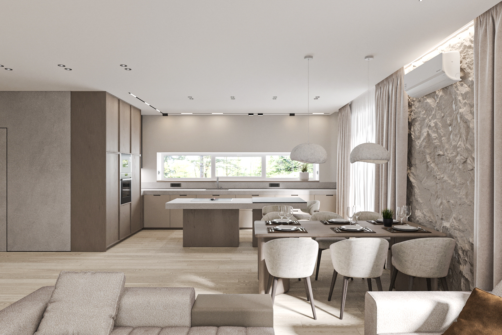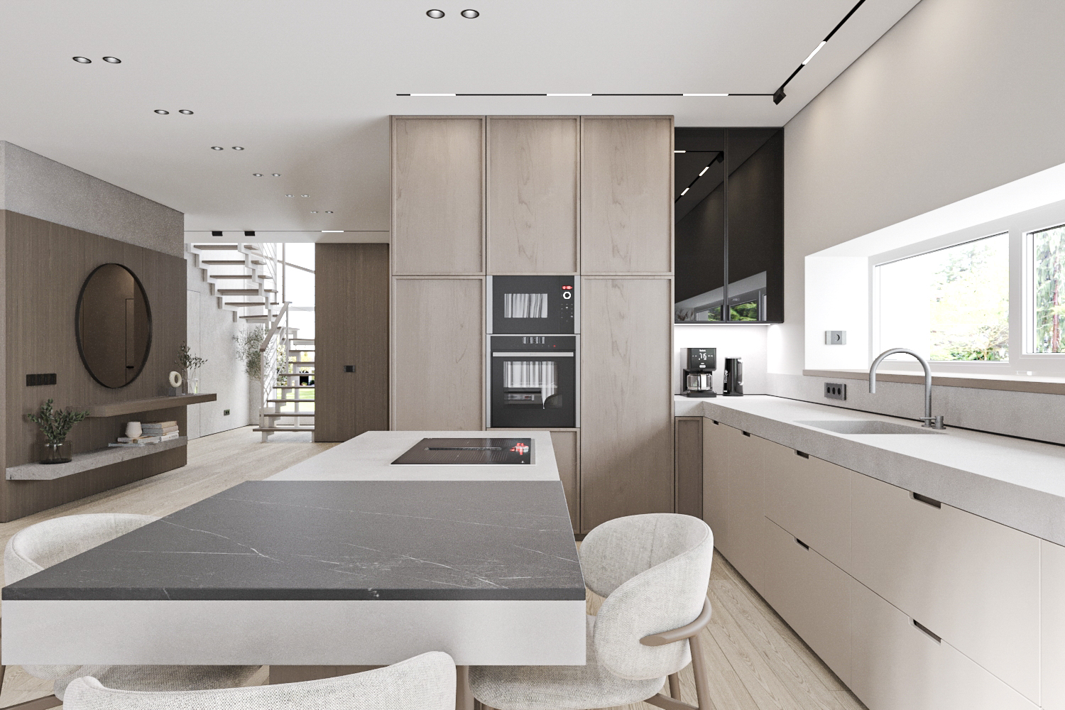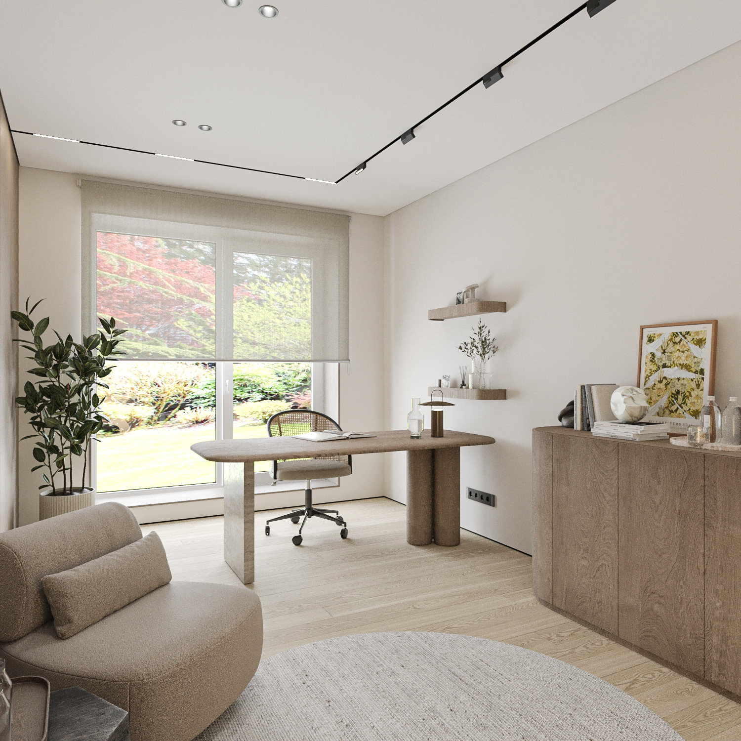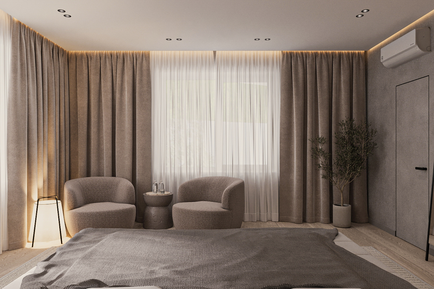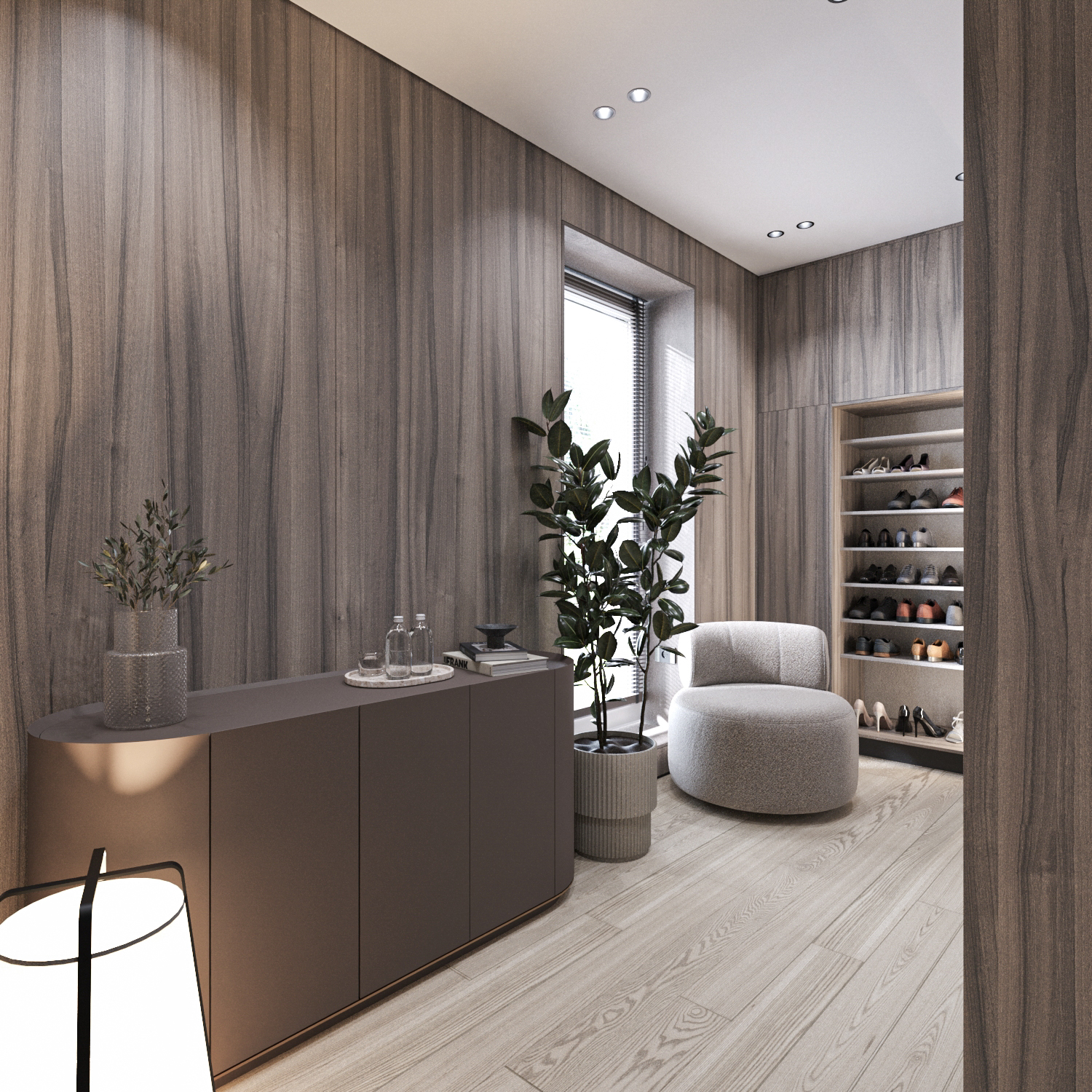 Мы разработали интерьер для двухэтажного дома площадью 255 м² в стиле джапанди. Задача состояла в том, чтобы создать современное, светлое пространство для молодой семьи, используя натуральные материалы и спокойную палитру.