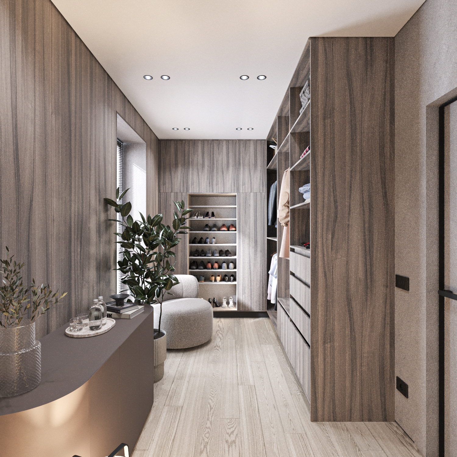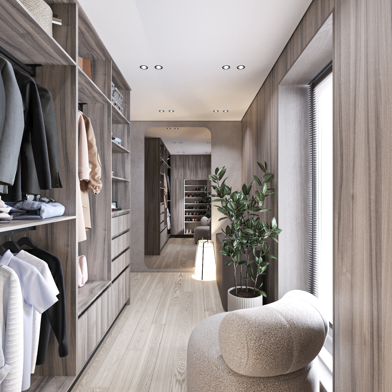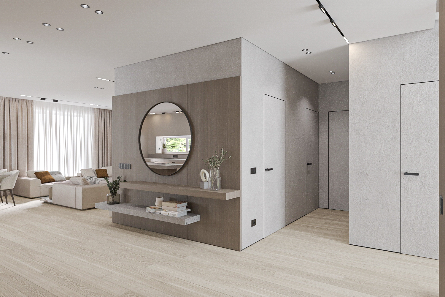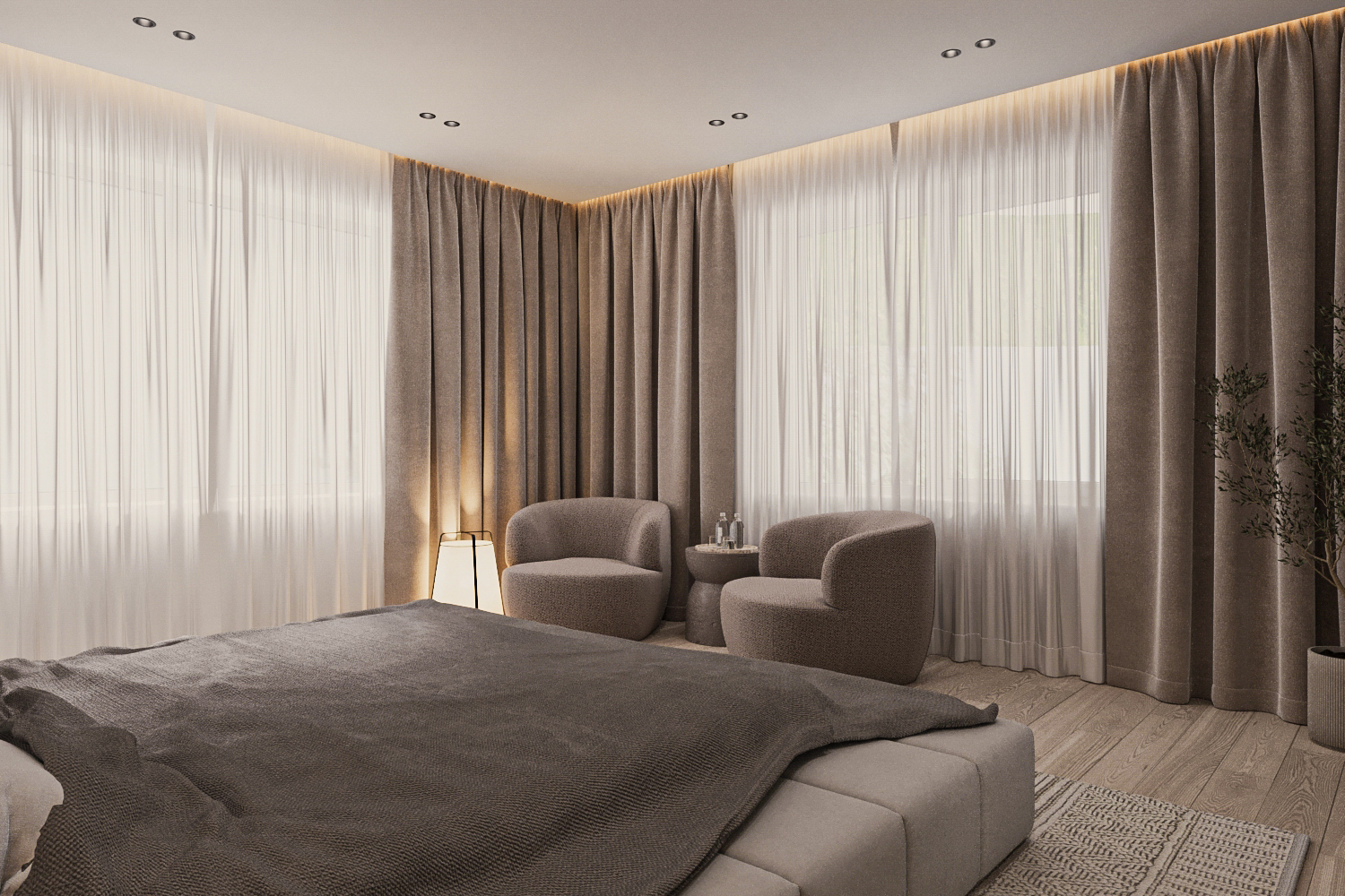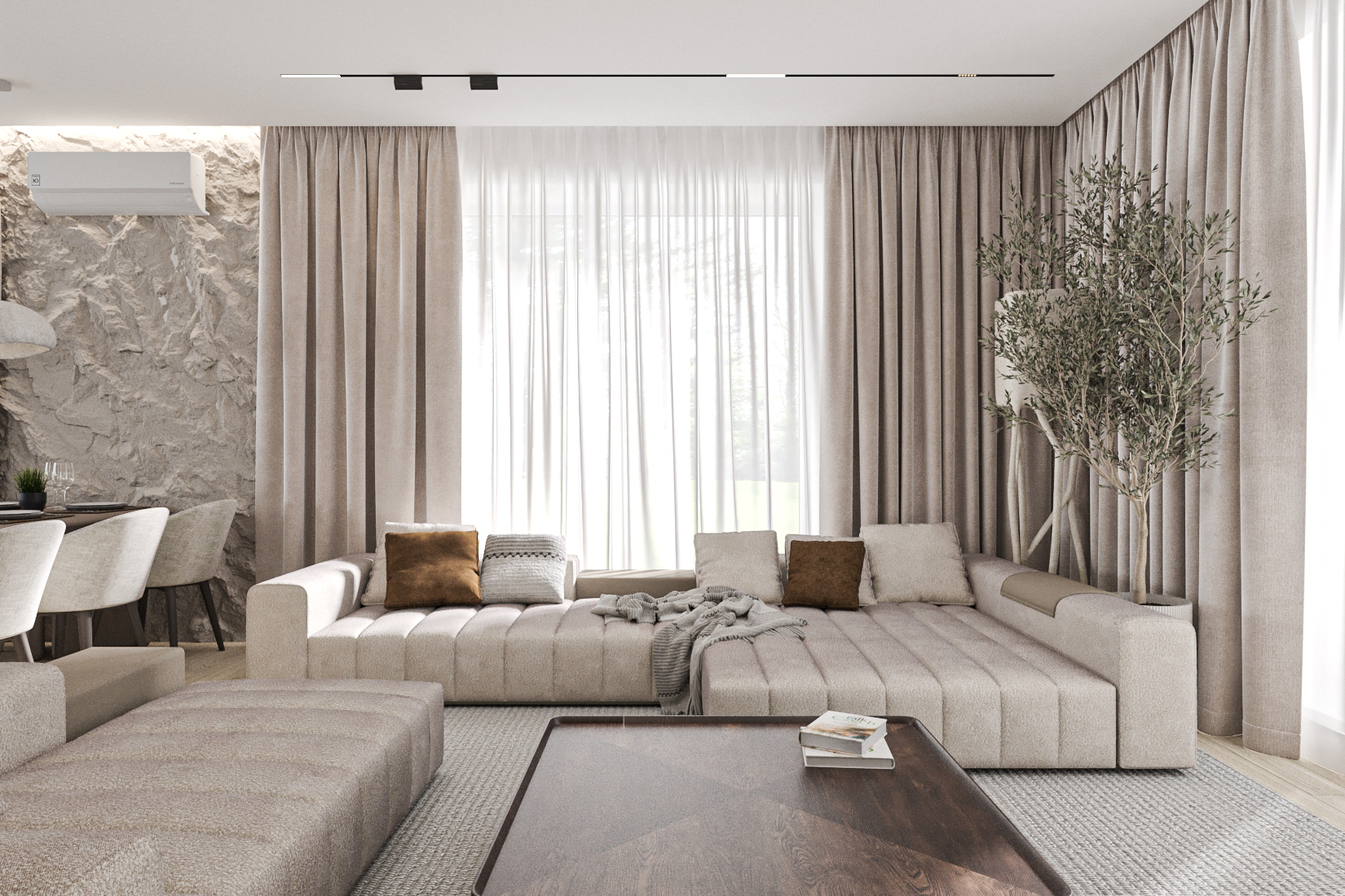 Мы разработали интерьер для двухэтажного дома площадью 255 м² в стиле джапанди. Задача состояла в том, чтобы создать современное, светлое пространство для молодой семьи, используя натуральные материалы и спокойную палитру.
